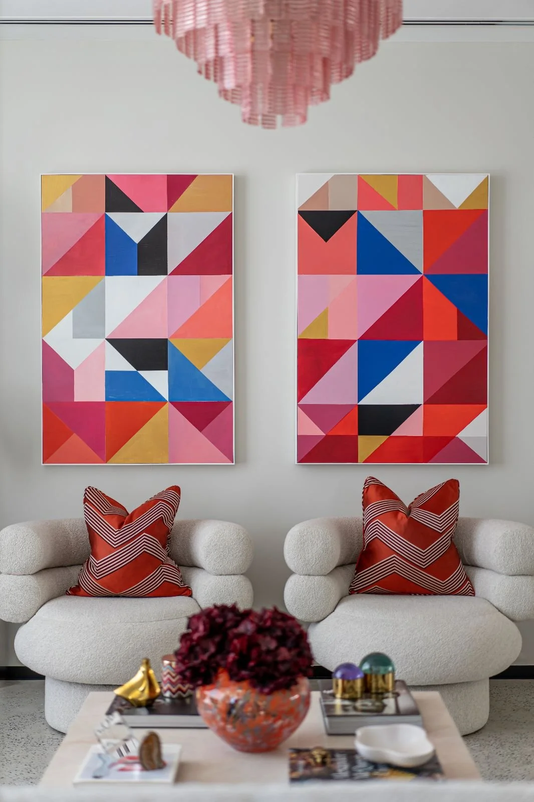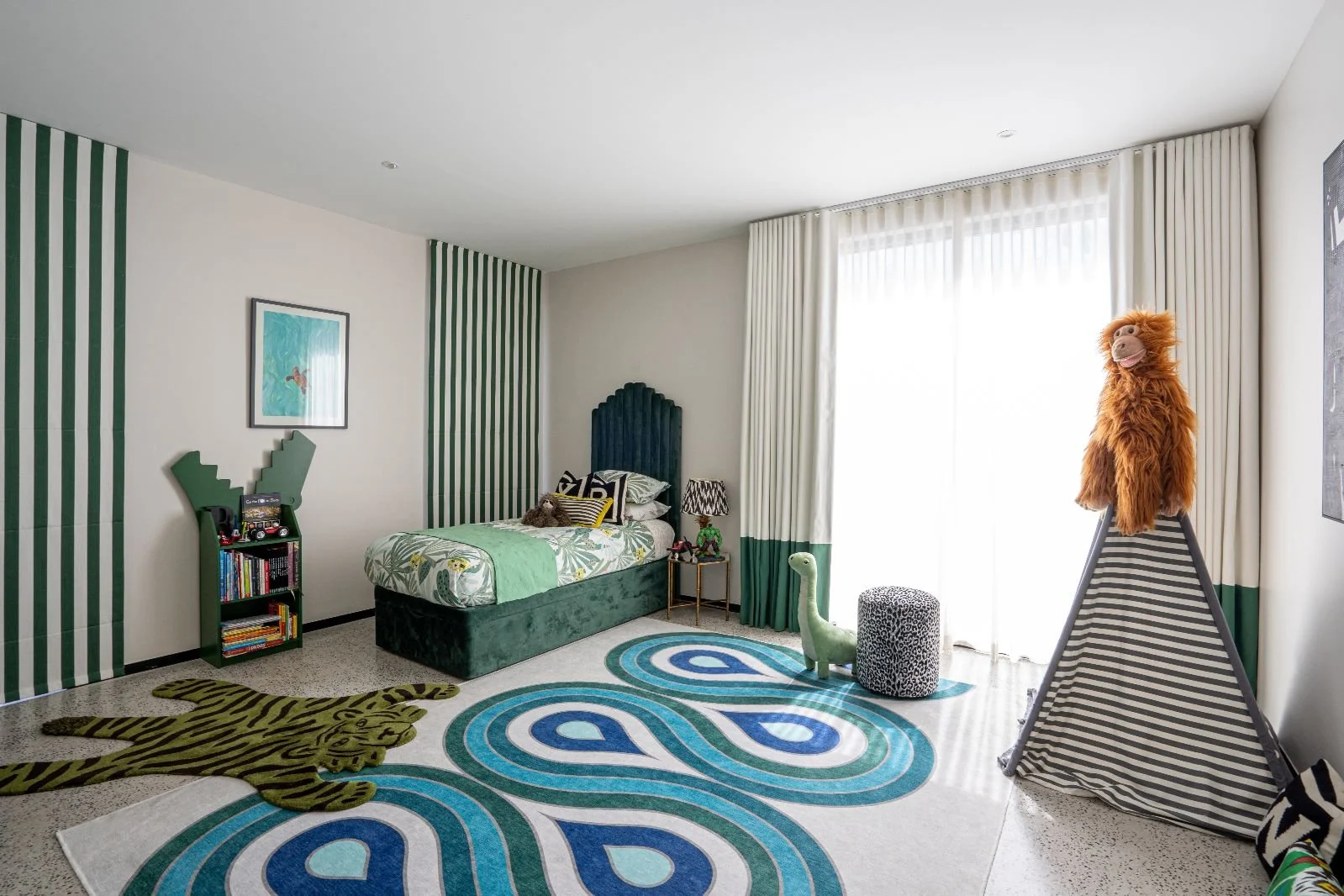 A vibrant and original project for a contemporary Dubai villa where the layout was planned and all furniture was sourced internationally. A bold use of colour and texture was employed, along with several custom pieces, including a calacatta viola oro dining table that takes centre stage in the ground floor. A large collection of contemporary art adorn the walls of this minimalistic villa in the iconic Jumeirah neighbourhood.